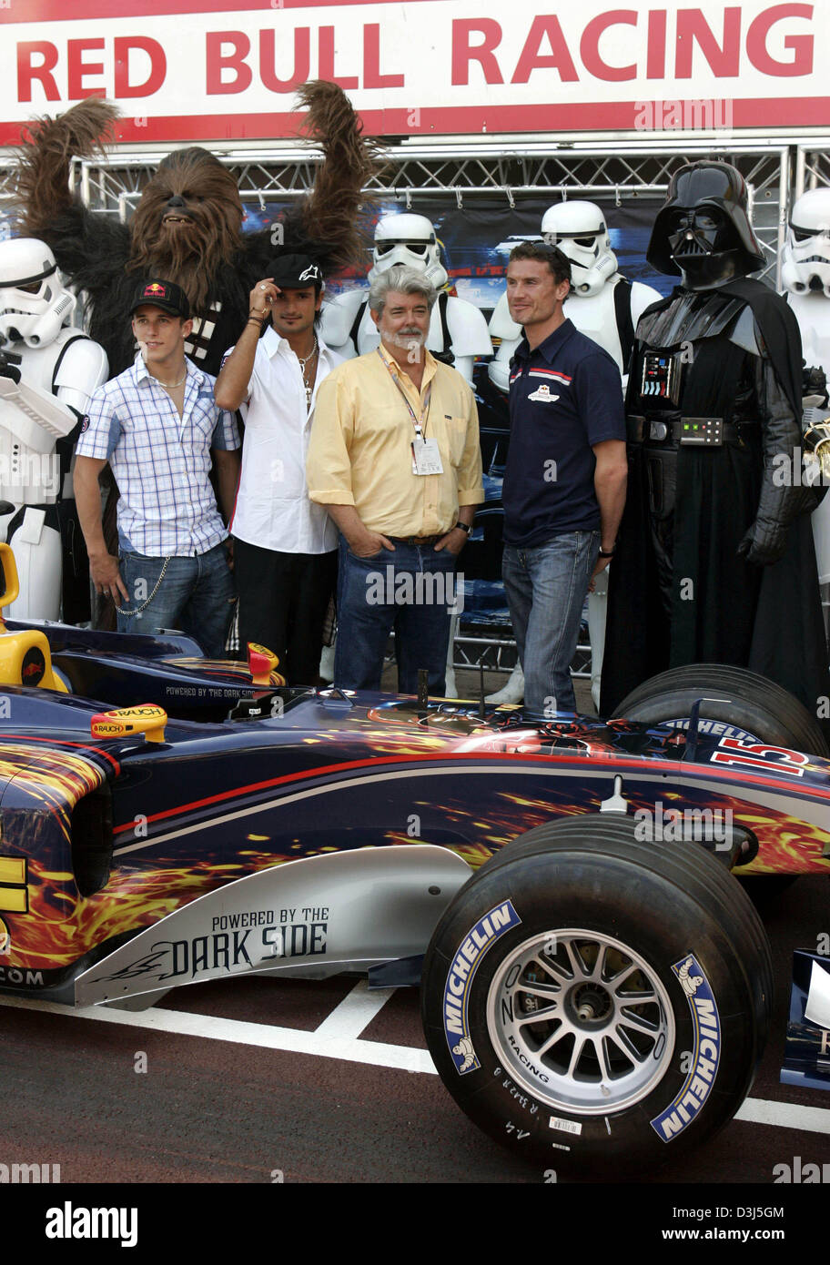 Dpa Star Wars Personajes De Peliculas Estan Planteando Junto Con Red Bull Racing De Formula Uno Pilotos Christien Austriaco Christian Klien Y El Italiano Vitantonio Luizzi Director De Cine George Lucas